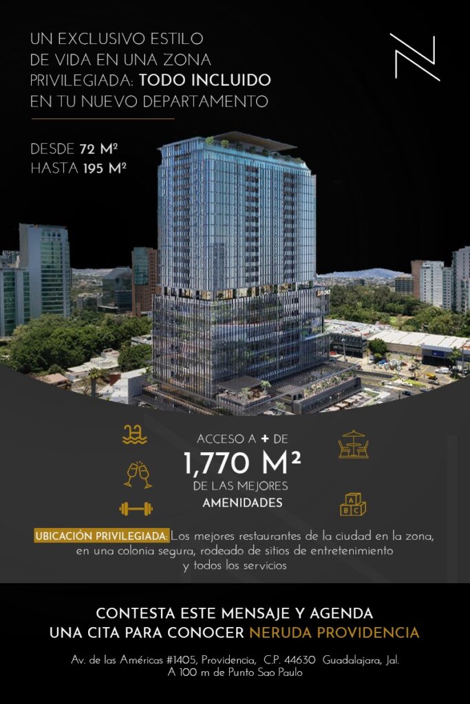 Ubicado en la zona más exclusiva de Guadalajara, Neruda Providencia es un desarrollo de *uso mixto* que combina residencias de lujo, espacios comerciales y oficinas corporativas, todo en un solo lugar. Diseñado por Rocher Holdings, este proyecto te ofrece el balance perfecto entre comodidad, estilo y funcionalidad.